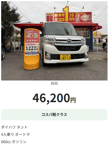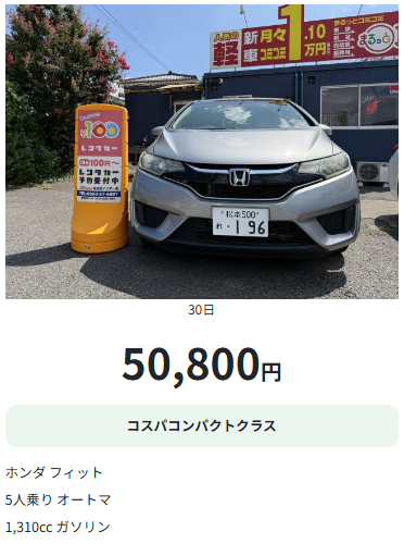 100円レンタカーで借りられるお車を30日単位で通常よりお安くお乗りいただけます!