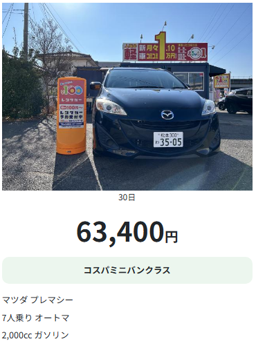 100円レンタカー塩尻北インター店HPでレンタカーの詳細がご覧いただけます!